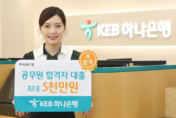 합격일로부터 1년 이내의 공무원 합격자인 경우는 신분증과 합격사실증명서를 지참하고 가까운 KEB하나은행 지점에서 '행복Together프리미엄주거래우대론' 대출 상품을 신청 할 수 있으며 해당기관의 유선확인 후 본인 신용등급에 따라 최대 5000만원까지 대출받을 수 있다.