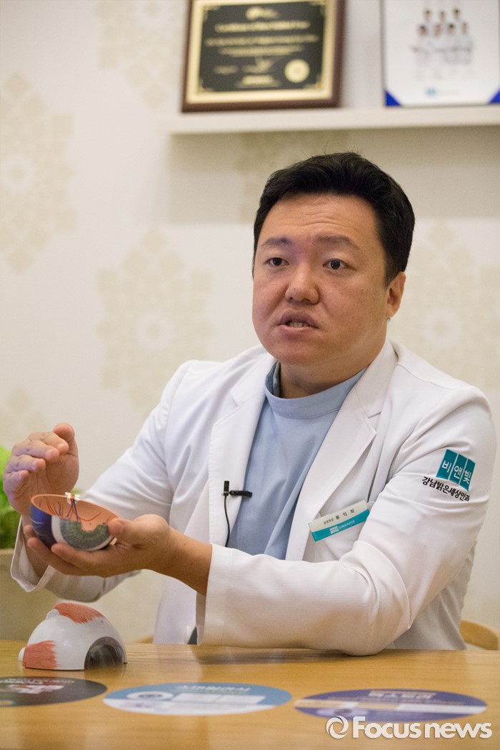 (서울=포커스뉴스) 5일 오전 서울 서초구 비앤빛 강남밝은세상안과에서 류익희 원장이 인터뷰를 하고 있다.