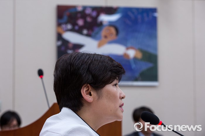 (서울=포커스뉴스) 강은희 여성가족부 장관이 15일 오후 서울 여의도 국회에서 열린 '여성가족위원회 전체회의'에 참석해 질의응답 하고 있다.