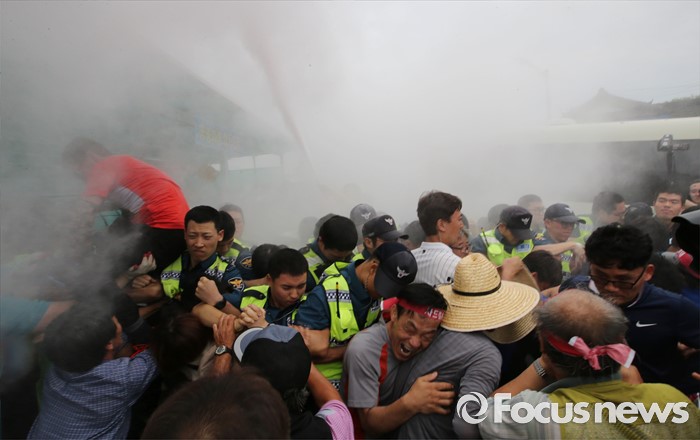 | △ 경찰과 충돌하는 성주 주민들 |