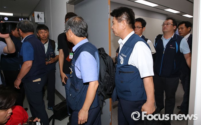 (세종=포커스뉴스) 15일 저녁 세종시 정부세종청사 고용노동부에서 열린 최저임금위원회 제13차 전원회의에서 근로자 위원들이 일방적인 회의 진행에 동참할 수 없다며 회의장을 나서고 있다.
