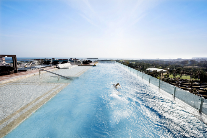 약 2주 동안 진행되는 '홈페이지 출석 이벤트'는 켄싱턴 제주 홈페이지를 매일 방문하고 출석 도장을 찍은 고객을 추첨해 다양한 상품을 제공한다. 켄싱턴 제주 호텔의 대표 패키지인 '럭셔리 올인클루시브' 글자를 완성하는 고객에게 켄싱턴 제주 호텔의 럭셔리 올인클루시브 패키지 숙박권, 월드 퀴진 뷔페 '라올레'의 식사권, 스타벅스 음료 교환권 등을 제공한다.켄싱턴 제주 호텔의 루프탑 스카이피니티 풀.<사진제공=켄싱턴 제주 호텔>