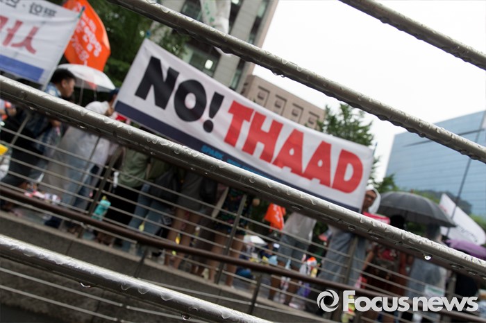 (서울=포커스뉴스) 16일 오후 서울 종로구 청계광장에서 사드한국배치반대전국대책회의 회원들이 사드 배치 결정 철회 평화행동을 하고 있다.