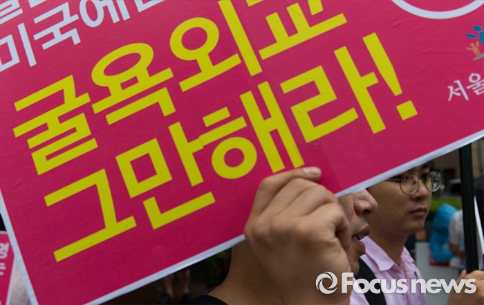 (서울=포커스뉴스) 16일 오후 서울 종로구 청계광장에서 사드한국배치반대전국대책회의 회원들이 사드 배치 결정 철회 평화행동을 하고 있다.