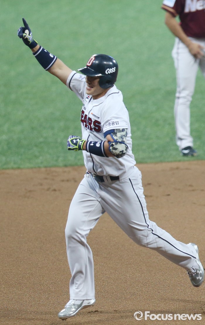 (서울=포커스뉴스) 16일 서울 고척 스카이돔에서 열린 2016 프로야구 올스타 경기에서 드림팀 민병헌이 1회말 좌월 솔로 홈런을 치고 환호하며 그라운드를 돌고 있다.