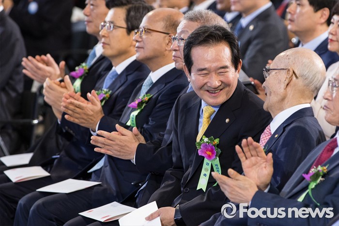 (서울=포커스뉴스) 정세균(오른쪽 두 번째) 국회의장이 17일 오전 서울 영등포구 여의도 국회의사당 중앙홀에서 열린 제68주년 제헌절 경축식에 참석하고 있다.