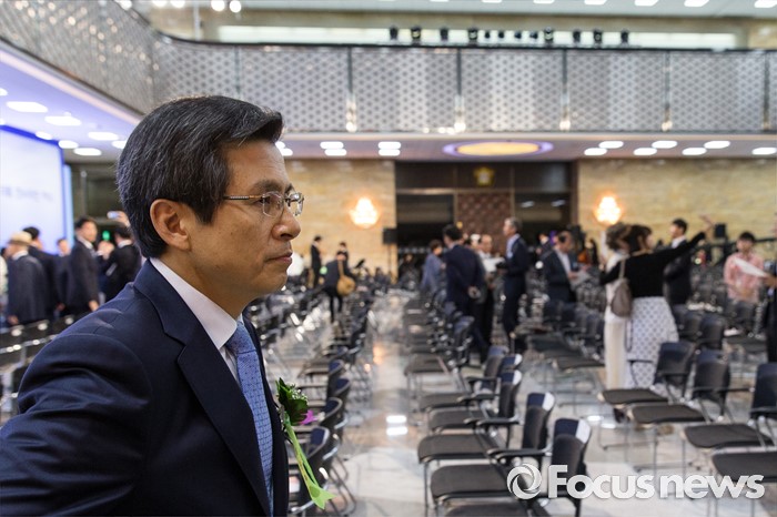 (서울=포커스뉴스) 황교안 국무총리가 17일 오전 서울 영등포구 여의도 국회의사당 중앙홀에서 열린 제68주년 제헌절 경축식이 끝나고 자리를 나서고 있다.