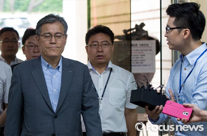 | △ 법원 들어서는 강현구 사장 |