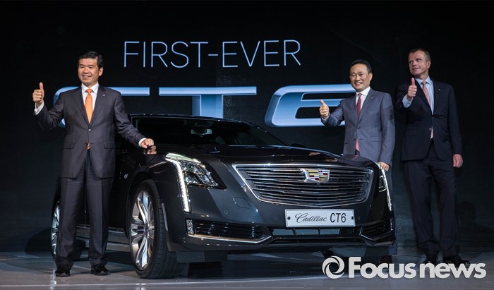 (서울=포커스뉴스) 18일 오전 서울 강남구 그랜드 인터컨티넨탈 서울 파르나스 호텔에서 열린 캐딜락 CT6 미디어 쇼케이스에서 제임스 김(왼쪽) 한국지엠 사장이 포즈를 취하고 있다.