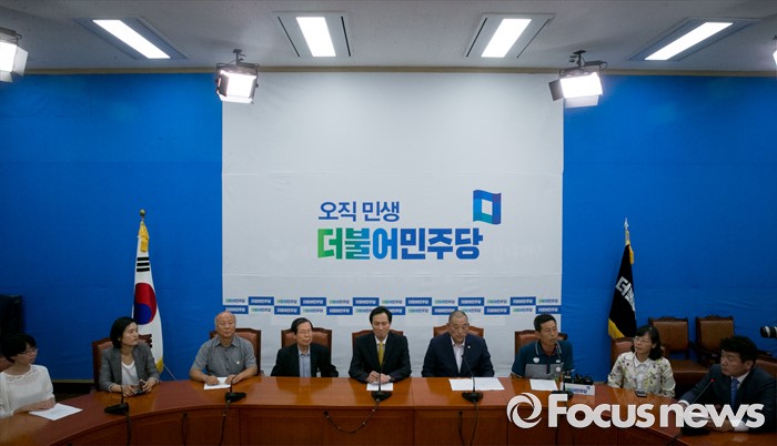 (서울=포커스뉴스) 우상호(오른쪽 다섯번째) 더불어민주당 원내대표가 18일 오전 서울 여의도 국회에서 사드반대 전국대책회의 등 관련단체와 면담을 하고 있다.