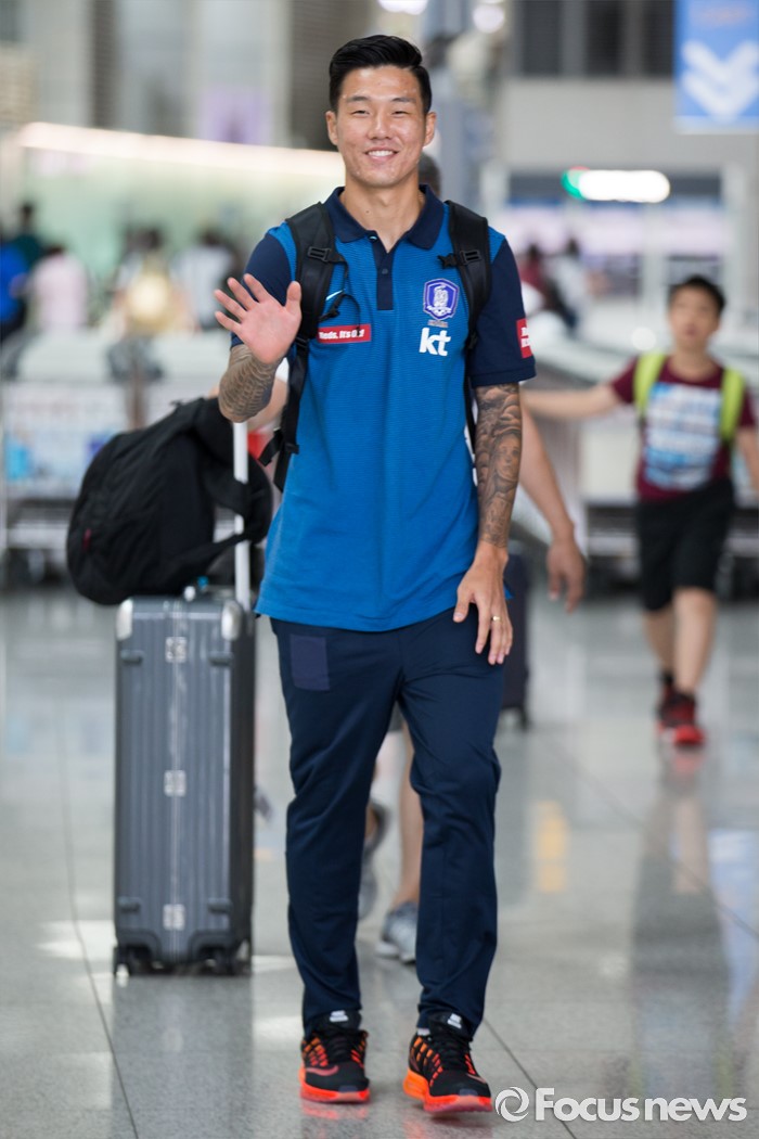 (인천공항=포커스뉴스) 2016년 리우데자네이루 올림픽 메달에 도전하는 올림픽 축구 국가대표팀 석현준이 18일 오후 인천국제공항에서 브라질 상파울루로 출국하기 전 취재진을 향해 손을 흔들고 있다.