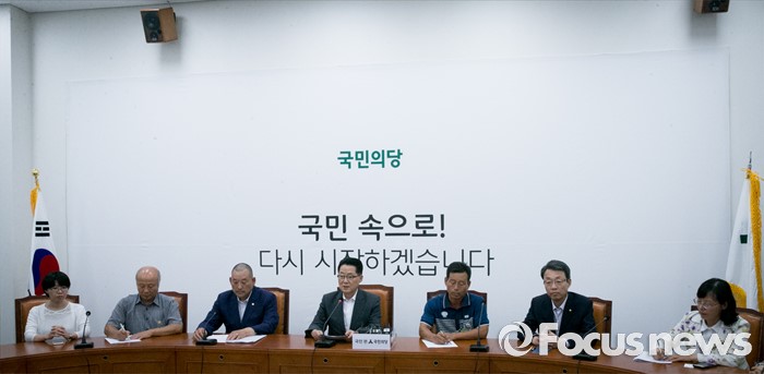(서울=포커스뉴스) 박지원(왼쪽 네번째) 국민의당 비상대책위원장이 18일 오후 서울 여의도 국회에서 열린 성주군 사드 저지 투쟁위원회 등 관련단체와 면담에 참석해 발언하고 있다.