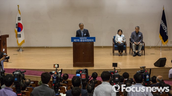 (서울=포커스뉴스) 김종인 더불어민주당 비상대책위 대표가 18일 오후 서울 여의도 국회의원회관에서 열린 '더불어민주당 중앙위원회의'에 참석해 인사말 하고 있다.