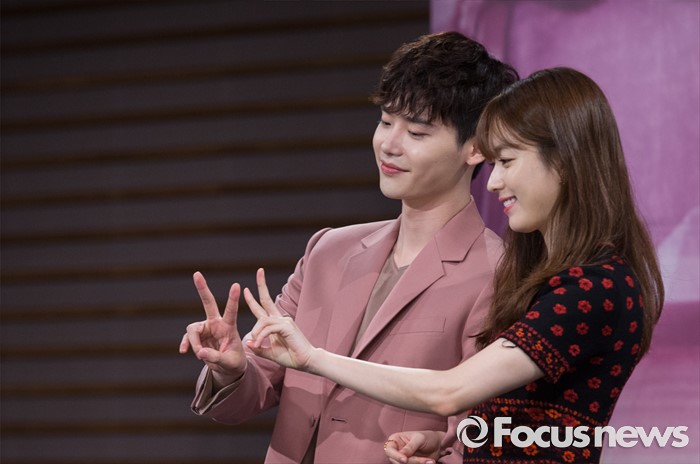 (서울=포커스뉴스) 18일 오후 서울 마포구 MBC 상암사옥에서 열린 MBC 수목미니시리즈 'W' 제작발표회에 참석한 배우 이종석(왼쪽)과 한효주가 포토타임을 갖고 있다.