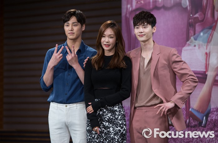 (서울=포커스뉴스) 18일 오후 서울 마포구 MBC 상암사옥에서 열린 MBC 수목미니시리즈 'W' 제작발표회에 참석한 배우 이태환(왼쪽부터) 정유진, 이종석이 포토타임을 갖고 있다.