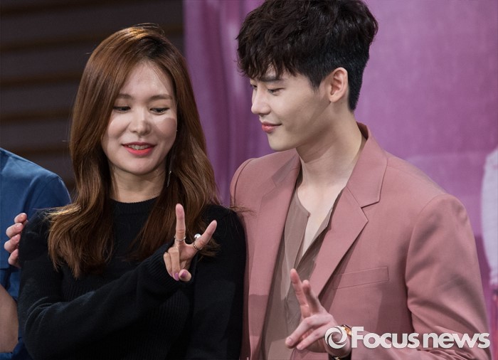 (서울=포커스뉴스) 18일 오후 서울 마포구 MBC 상암사옥에서 열린 MBC 수목미니시리즈 'W' 제작발표회에 참석한 배우 정유진(왼쪽)과 이종석이 포토타임을 갖고 있다.