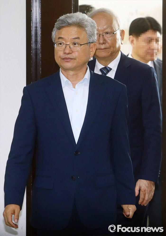 | △ 회의실로 들어서는 이철우 위원장-이병호 국정원장 |