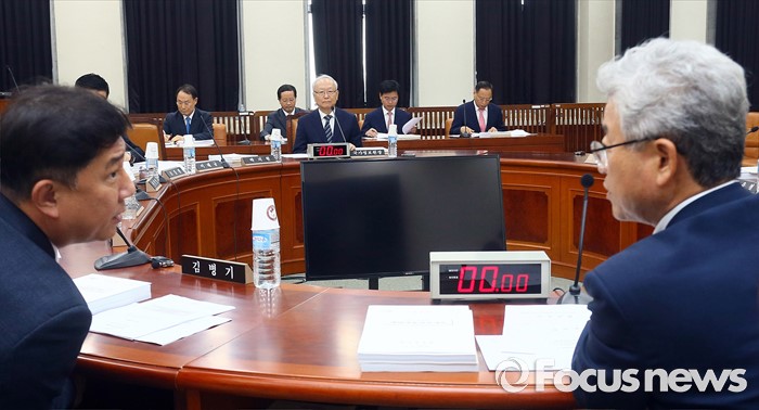 (서울=포커스뉴스) 이병호 국가정보원장이 18일 오후 서울 여의도 국회에서 열린 정보위원회 전체회의에서 이철우 정보위원장과 김병기 더불어민주당 의원의 대화를 지켜보고 있다.