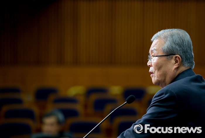 (서울=포커스뉴스) 18일 오후 서울 여의도 국회 헌정기념관에서 한국적 제3의 길 후원으로 열린 '개헌을 말하다 의원 대담, 어떤 헌법인가?'에 참석한 김종인 더불어민주당 비대위 대표가 축사를 하고 있다.