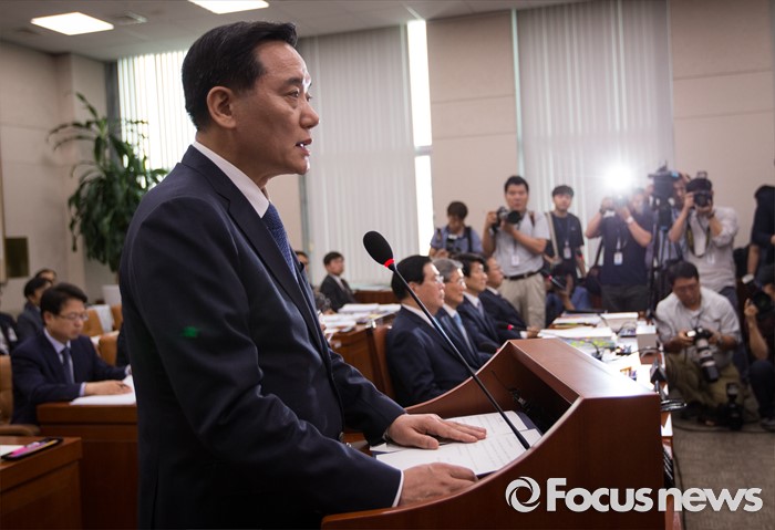(서울=포커스뉴스) 김현웅 법무부 장관이 18일 오후 서울 여의도 국회에서 열린 법제사법위원회 전체회의에 출석해, 진경준 검사장 구속 관련 법무부의 초기 대응에 대해 사과하고 있다.
