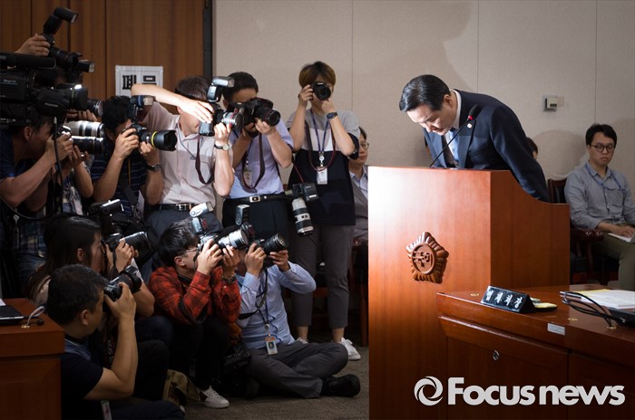 (서울=포커스뉴스) 김현웅 법무부 장관이 18일 오후 서울 여의도 국회에서 열린 법제사법위원회 전체회의에 출석해, 진경준 검사장 구속 관련 법무부의 초기 대응에 대해 사과하고 있다.