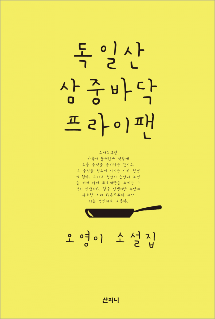 오영이 작가는 '문예운동' 소설 신인상과 '한국소설' 신인상, 그리고 '동리목월' 신인상을 수상했으며 소설집으로 '별들은 이제 섬으로 간다'(2011)가 있다. 산지니. 1만3000원.'독일산 삼중바닥 프라이팬' 표지.<사진제공=산지니>