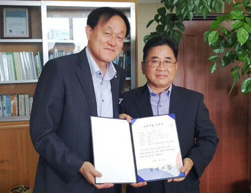 최성열 다날 쏘시오 부사장은 “쏘시오가 성남시뿐만 아니라 대한민국 전역에 공유문화를 알리는 선도기업이 될 수 있도록 관련 기업·기관과 협력을 지속해나가겠다”고 말했다.최성열 다날 쏘시오 부사장(오른쪽)과 박세종 성남시청 재정경제국 국장.<사진제공=다날 쏘시오>
