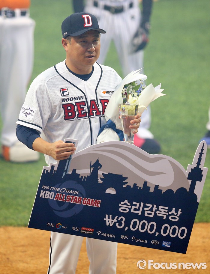 김 감독은 부임 첫해 2015시즌 두산을 14년 만에 한국시리즈 정상에 올려 놓으며 지도력을 인정받았다. 2년차인 올해에도 상승세를 이어가고 있다. 두산은 현재 83경기 55승 1무 27패로 1위에 올라 있다. 승률은 6할7푼1리다.