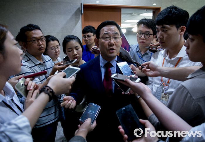 김정재 원내대변인은 이와 관련해 "원내대표가 배치하는 것이라 자세한 사항은 모른다"고 답변했다.전당대회 출마를 선언한 주호영 새누리당 의원이 18일 오후 서울 여의도 국회 정론관에서 추가로 공개된 윤상현 의원의 공천개입 녹취록과 관련 성명서를 발표한 뒤 취재진 질문에 답하고 있다. 2016.07.18 박동욱 기자