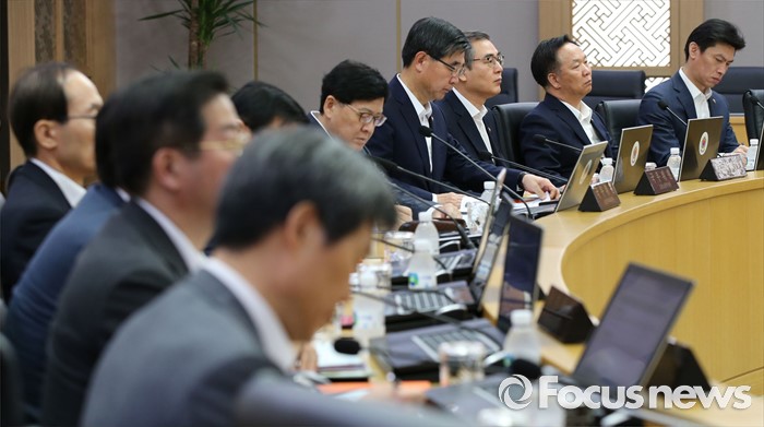 (세종=포커스뉴스) 19일 오전 세종시 정부세종청사 국무회의장에서 서울-세종 간 영상회의로 열린 국무회의에 참석한 국무위원들이 황교안 국무총리의 발언을 경청하고 있다.