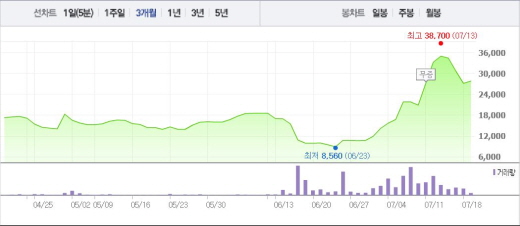 텔콘은 11일과 12일 20%가 넘는 상승폭을 나타냈지만 14일과 15일, 그리고 18일 1.57%, 10.89%, 11.56%의 낙폭을 기록하며 하락 반전했다.