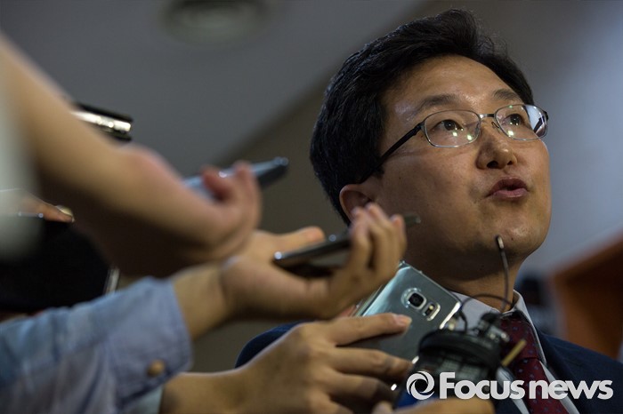 (서울=포커스뉴스) 김용태 새누리당 의원이 19일 오전 서울 여의도 국회에서 윤상현 의원의 공천개입 의혹 관련 입장발표를 하고 있다.