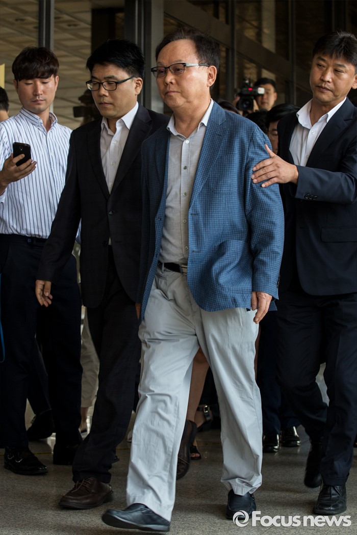 (서울=포커스뉴스) 롯데케미칼 270억원대 소송 사기에 연루된 혐의를 받는 기준 전 롯데물산 사장이 19일 오전 서울중앙지검에 피의자 신분으로 출석하고 있다.