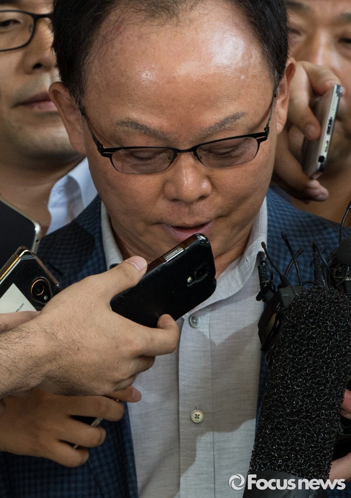 (서울=포커스뉴스) 롯데케미칼 270억원대 소송 사기에 연루된 혐의를 받는 기준 전 롯데물산 사장이 19일 오전 서울중앙지검에 피의자 신분으로 출석, 취재진의 질문에 답하고 있다.