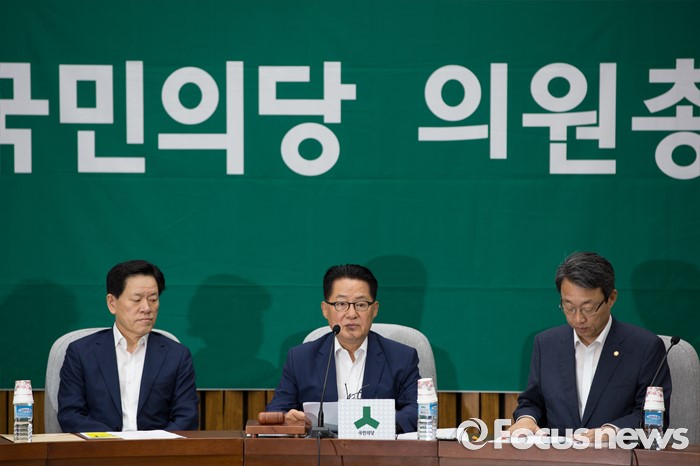(서울=포커스뉴스) 박지원 국민의당 비상대책위원장과 김성식 정책위의장이 19일 오전 서울 여의도 국회에서 열린 의원총회에 참석해 모두발언 하고 있다.