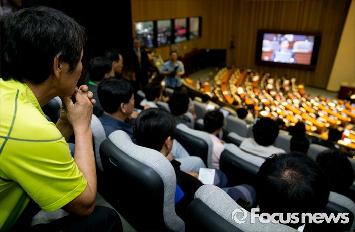 (서울=포커스뉴스) 19일 오전 서울 여의도 국회에서 열린 344회 국회(임시회) 1차 본회의, 사드(THAAD·고고도미사일방어체계) 배치에 대한 긴급현안질문에 참석한 경북 성주군민 등 관계자들이 방청을 하고 있다.
