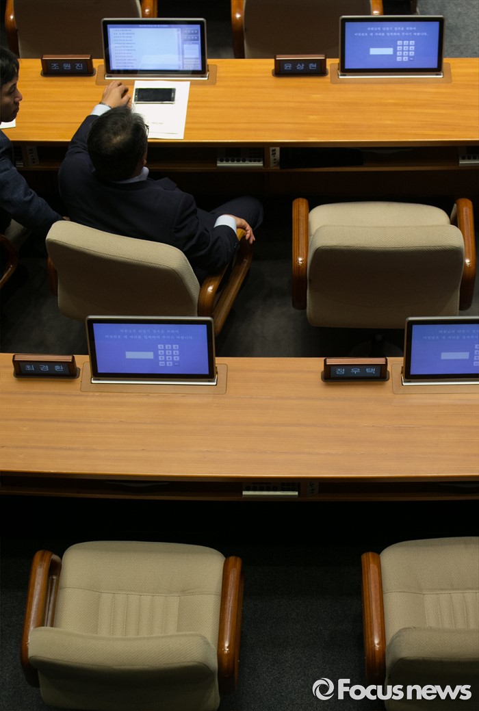 (서울=포커스뉴스) 19일 오전 서울 여의도 국회에서 열린 344회 국회(임시회) 1차 본회의, 사드(THAAD·고고도미사일방어체계) 배치에 대한 긴급현안질문에 공천개입 등 논란으로 불참한 윤상현(오른쪽 위), 최경환(왼쪽 아래) 새누리당 의원의 빈 자리가 보이고 있다.