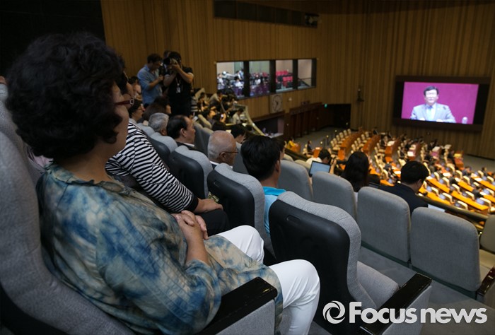(서울=포커스뉴스) 19일 오전 서울 여의도 국회에서 열린 344회 국회(임시회) 1차 본회의, 사드(THAAD·고고도미사일방어체계) 배치에 대한 긴급현안질문에 참석한 경북 성주군민 등 관계자들이 방청을 하고 있다.