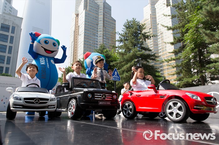 (서울=포커스뉴스) 19일 오전 서울 송파구 어린이 교통안전교육장에서 어린이들이 모바일키즈 프로그램을 통해 교통안전교육을 체험하고 있다. 메르세데스-벤츠 사회공헌위원회와 도로교통공단은 지난 2015년부터 1년 7개월여 동안 어린이교통공원을 개보수 지원했다.