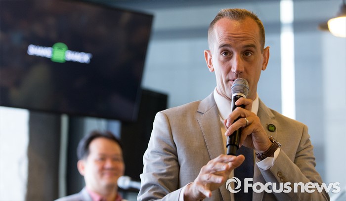 (서울=포커스뉴스) 19일 오전 서울 강남구 쉐이크쉑 강남점에서 열린 미디어 프리젠테이션 행사에서 랜디 가루티 CEO가 인사말을 하고 있다.