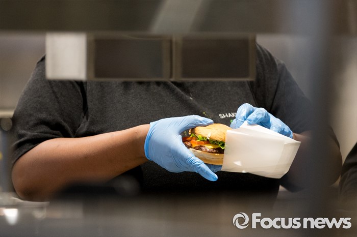 (서울=포커스뉴스) 19일 오전 서울 강남구 쉐이크쉑 강남점에서 열린 미디어 프리젠테이션 행사에서 직원들이 Shack-cago Dog를 포장하고 있다.