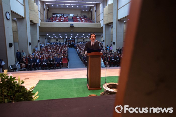 (서울=포커스뉴스) 19일 오전 서울 동작구 국립현충원 현충관에서 우남 이승만 전 대통령 51주기 추모식이 열리고 있다.