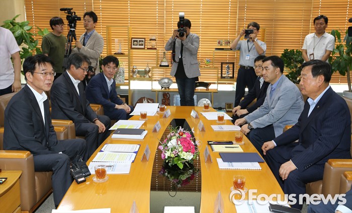 (세종=포커스뉴스) 강호인 국토교통부장관이 19일 오후 세종시 정부세종청사 국토부 접견실에서 열린 평창동계올림픽 성공개최를 위한 업무협약식에서 이희범 평창동계올림픽조직위원장과 담소를 나누고 있다.