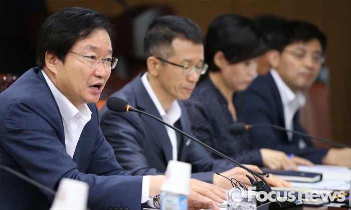 (세종=포커스뉴스) 김영석(왼쪽) 해양수산부장관이 19일 오후 세종시 정부세종청사 해양수산부 대회의실에서 열린 제4차 수산물 수출대책회의에 참석해 회의를 주재하고 있다.