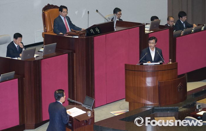 (서울=포커스뉴스) 19일 오후 서울 여의도 국회에서 열린 344회 국회(임시회) 1차 본회의, 사드(THAAD·고고도미사일방어체계) 배치에 대한 긴급현안질문에 참석한 이완영 새누리당 의원(경북 고령·성주·칠곡)이 한민구 국방부 장관에게 질문하고 있다.