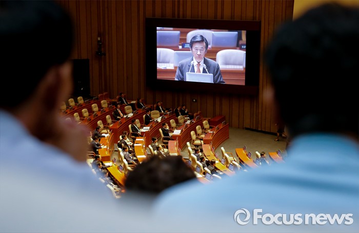 (서울=포커스뉴스) 19일 오후 서울 여의도 국회에서 열린 344회 국회(임시회) 1차 본회의, 사드(THAAD·고고도미사일방어체계) 배치에 대한 긴급현안질문에 참석한 성주군민 등 관계자들이 이완영 새누리당 의원이 윤병세 외교부 장관에게 질문하고 있는 모습을 방청하고 있다.