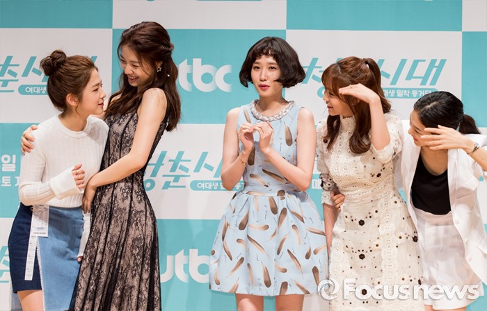 (서울=포커스뉴스) 19일 오후 서울 마포구 JTBC사옥에서 열린 금토드라마 '청춘시대' (연출 이태곤, 김상호, 극본 박연선) 제작발표회에 참석한 배우 박혜수(왼쪽부터), 류화영, 박은빈, 한승연, 한예리가 포토타임을 갖고 있다. 한예리, 한승연, 박은빈, 류화영, 박혜수 등이 출연하는 드라마 '청춘시대'는 외모부터 남자 취향, 연애스타일까지 모두 다른 5명의 매력적인 여대생이 셰어하우스에 모여 살며 벌어지는 유쾌하고 발랄한 여대생 밀착 동거드라마다. 7월 22일 첫 방송 예정.
