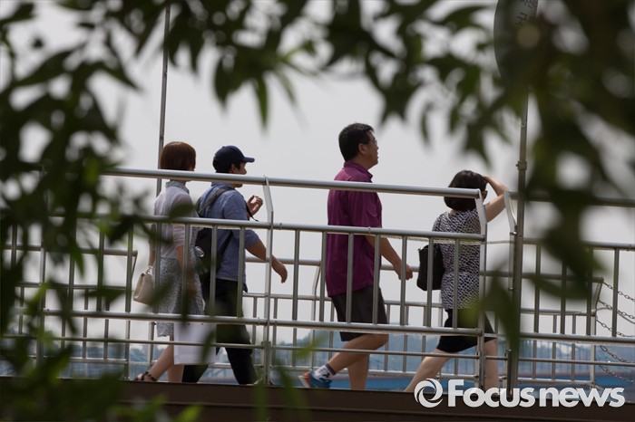 (서울=포커스뉴스) 서울 지역에 폭염주의보가 내린 19일 오후 서울 서초구 반포한강공원 일대에서 시민들이 걸어가고 있다.