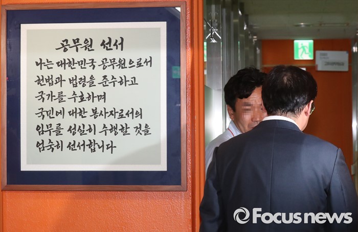 (서울=포커스뉴스) '민중은 개·돼지' 발언으로 파문을 일으킨 나향욱 전 교육부 정책기획관이 19일 오후 중앙징계위원회에 참석하고 있다.