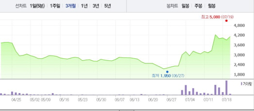 앞서 한일진공은 주가급등 관련 한국거래소의 조회공시 요구에 “케이피엠테크 공개입찰 참여를 위해 한일진공컨소시엄이 채권단과 MOU를 맺었다”며 “실사 후 본계약시 주식인수 여부가 확정된다”고 15일 답변했다.주가흐름<사진출처=네이버 캡쳐>